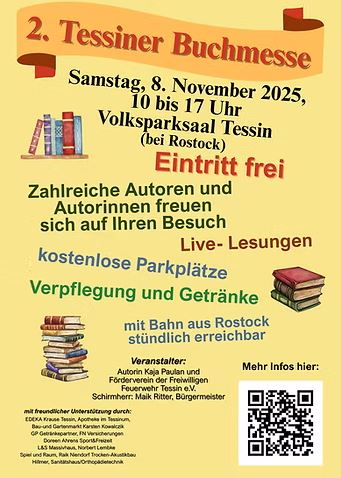 Meine nächste Buchlesung findet am Donnerstag, 13.02.2025, um 19.00 Uhr im Schulungsraum vom Tessinum in der Karl-Marx-Str. 14 statt. Der Kartenvorverkauf läuft bei Ahrens Sport Tessin in der Rostocker Straße 24.